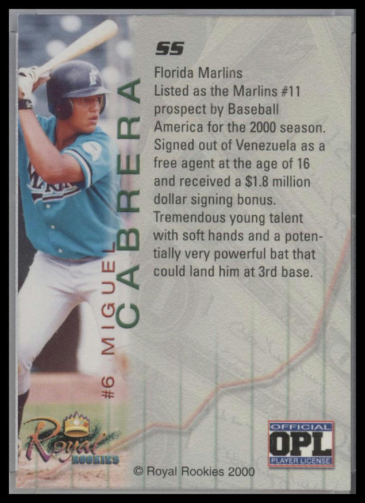 Miguel Cabrera 2000 Royal Rookies LIMITED EDITION #6 Rookie Marlins Tigers RC