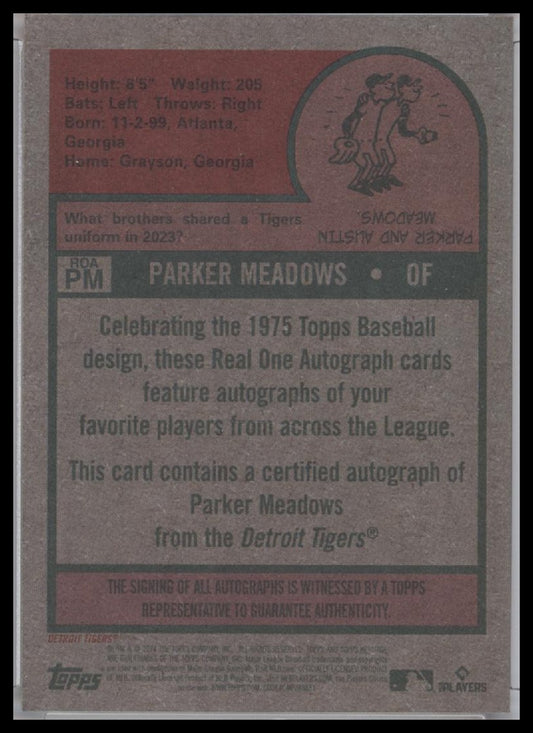 2024 Topps Heritage High Number - Real One Autographs Parker Meadows #ROA-PM