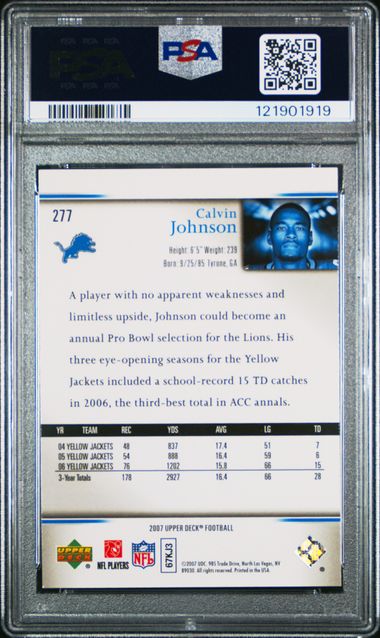 2007 UPPER DECK #277 CALVIN JOHNSON ROOKIE EXCLUSIVES psa 9