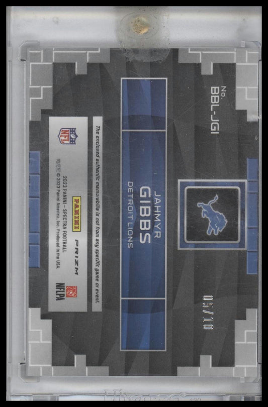 2023 Panini Spectra - Building Blocks Jahmyr Gibbs Meta Prizm 05/10 (MEM, RC)
