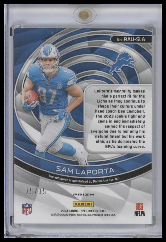 SAM LAPORTA ~ 2023 Panini Spectra Spectral Signatures Neon Green RC #RAU-SLA (/35)