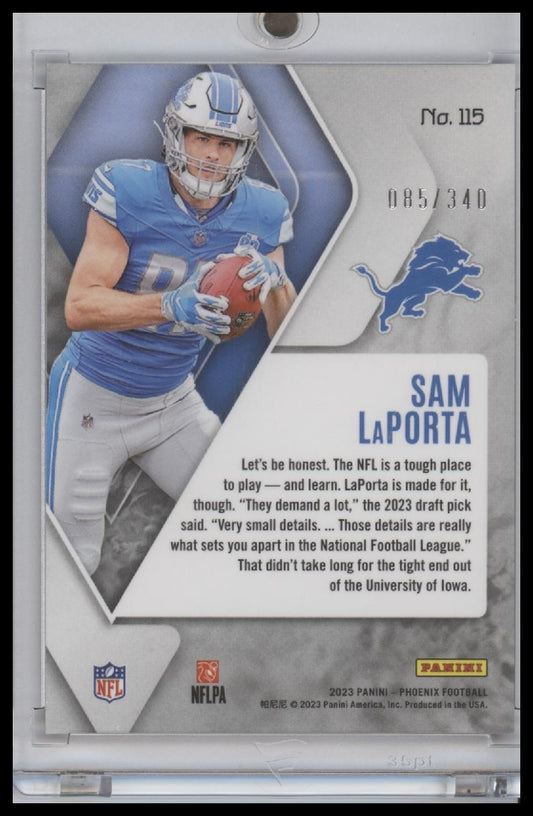 Sam LaPorta 2023 Panini Phoenix Football #115 EXCLUSIVE /340 Rookie Card Lions