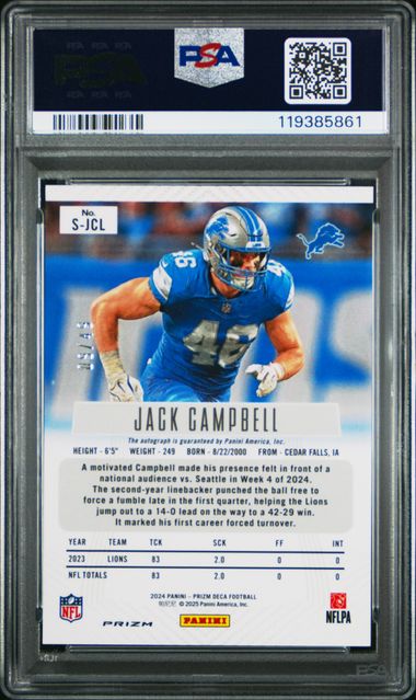 2024 PANINI PRIZM DECA SIGNATURES #SJCL JACK CAMPBELL SIGNATURE-BLUE PRIZM